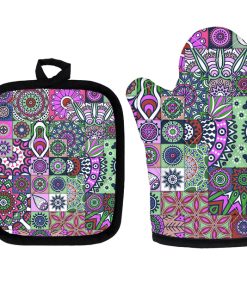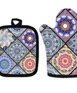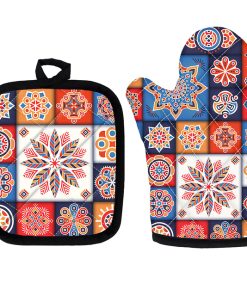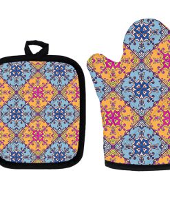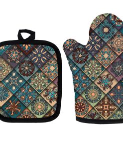 Mettez la main sur le compagnon de cuisine parfait ! Nos notre ensemble de manique et gant de cuisine pour four à imprimé bohème sont conçus pour garder vos mains en sécurité et confortables pendant la cuisson.