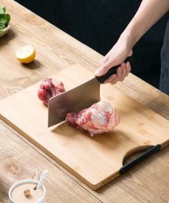 Cette grande planche à découper en bois est un accessoire de haute qualité fait de bambou naturel. D’une épaisseur de 1, 8 cm, elle supporte très bien les chocs et peut servir à découper les os les plus durs.