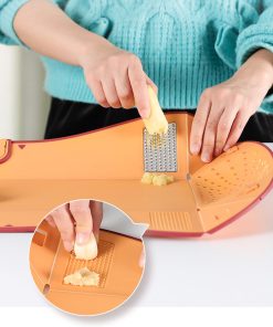 En plus de sa fonction de planche à découper, elle est équipée d’une râpe à ail et à gingembre, ainsi que d’un aiguiseur de couteau. Elle peut aussi se transformer en passoire ou en bac de lavage, vous offrant une solution complète pour toutes vos tâches culinaires.