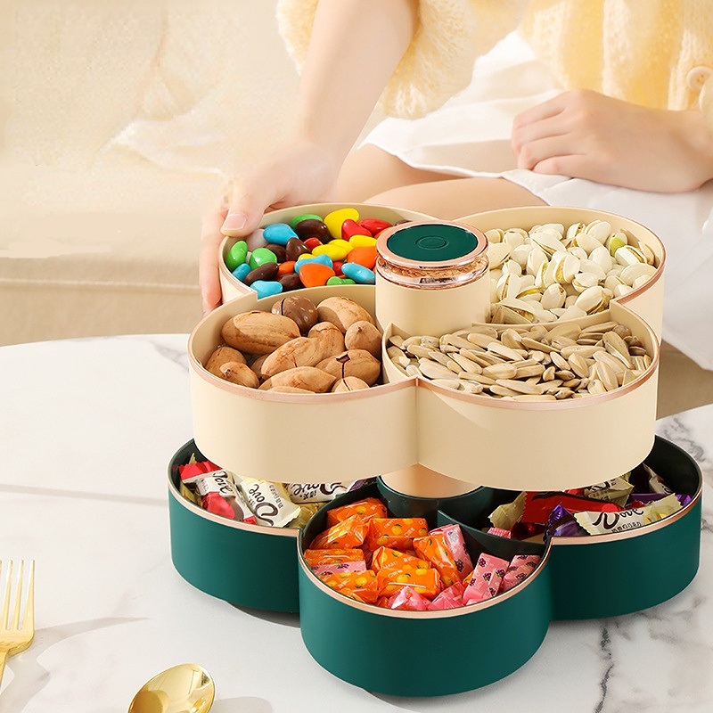 Un plateau tout-en-un, telle est la configuration de ce fabuleux plateau pour apéritif rotatif. Cela signifie qu’il est envisageable de combiner toutes les saveurs pour vos invités en un seul service.